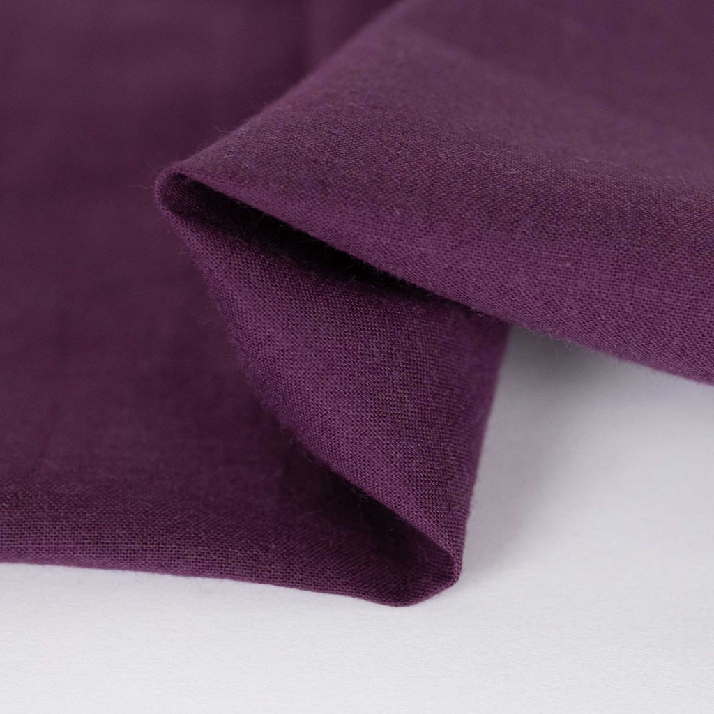 An exceptionally smooth, lightweight, opaque, and finely woven cotton lawn fabric by Lady McElroy. Oeko-tex Certified, nontoxic, and made in the UK. A versatile fabric that is great for lightweight, blousy summer garments or as a lining. The color Aubergine is a rich eggplant purple. This shade is slightly translucent.
