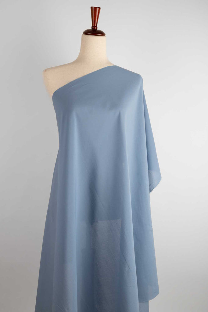 An exceptionally smooth, lightweight, opaque, and finely woven cotton lawn fabric by Lady McElroy. Oeko-tex Certified, nontoxic, and made in the UK. A versatile fabric that is great for lightweight, blousy summer garments or as a lining. The color Yale Blue is a muted steel blue. This shade is slightly translucent.