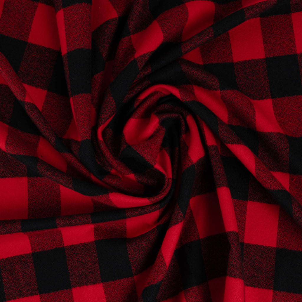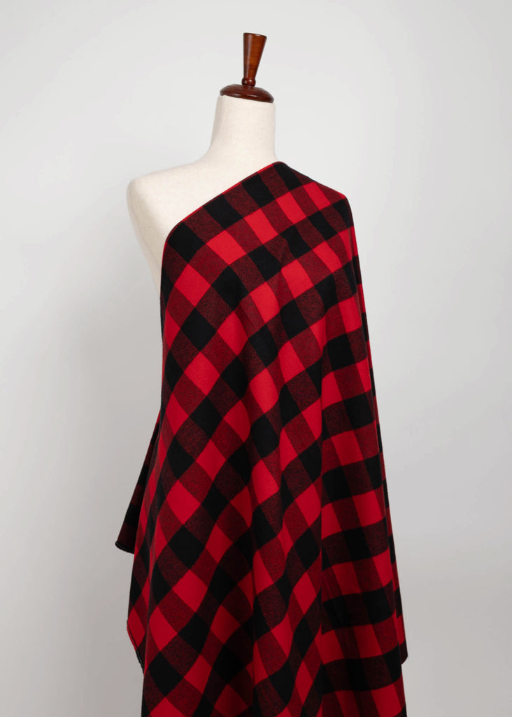 Woven with a unique, yarn-dyed crepe weave, each style features vibrant colors and beautiful patterns. This Classic Buffalo Check in Red features 2" x 1" checks in red and black. Perfect for button-down shirts, tunics, pajamas, wraps, scarves, and shawls.