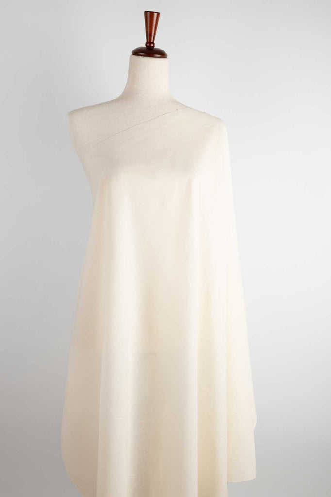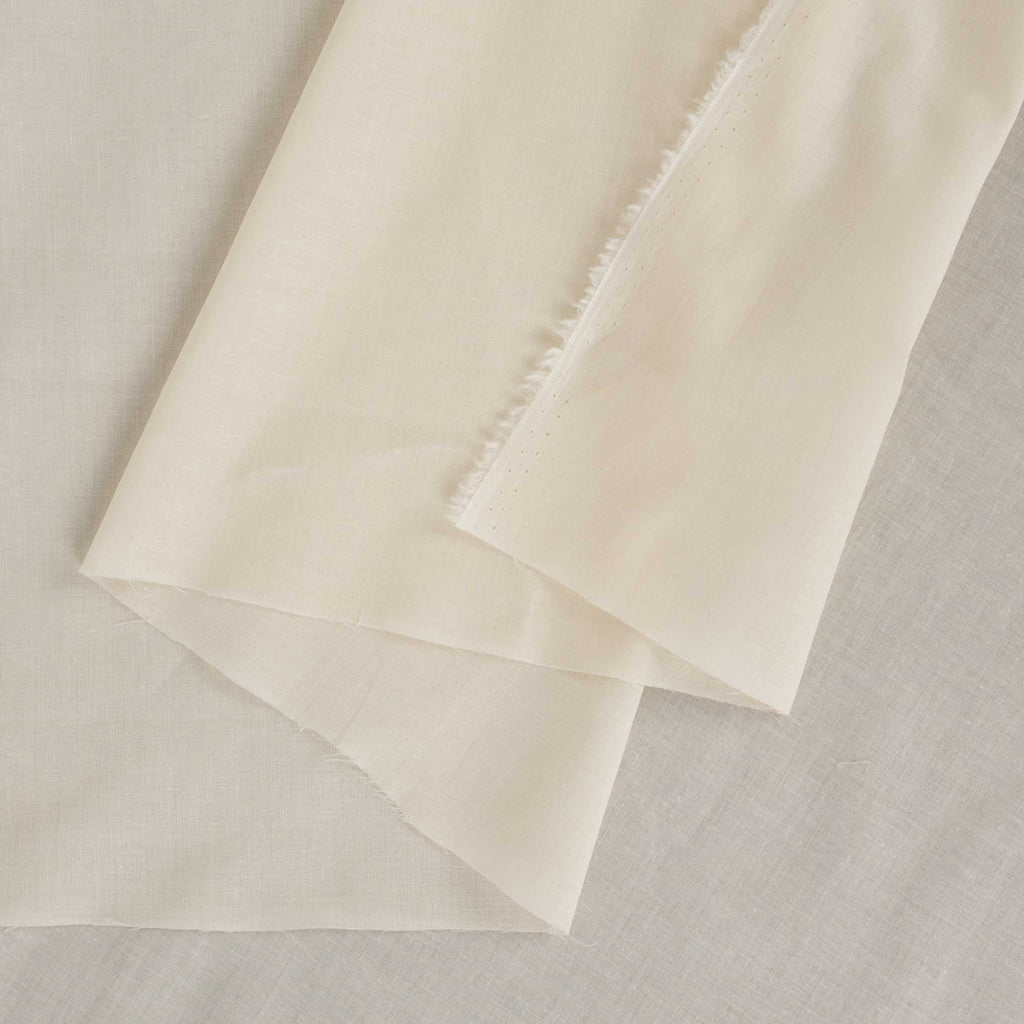 An exceptionally smooth, lightweight, opaque, and finely woven cotton lawn fabric by Lady McElroy. Oeko-tex Certified, nontoxic, and made in the UK. A versatile fabric that is great for lightweight, blousy summer garments or as a lining. The color Cream is a warm, off-white. This shade is translucent.