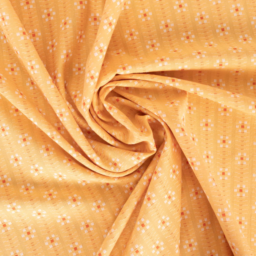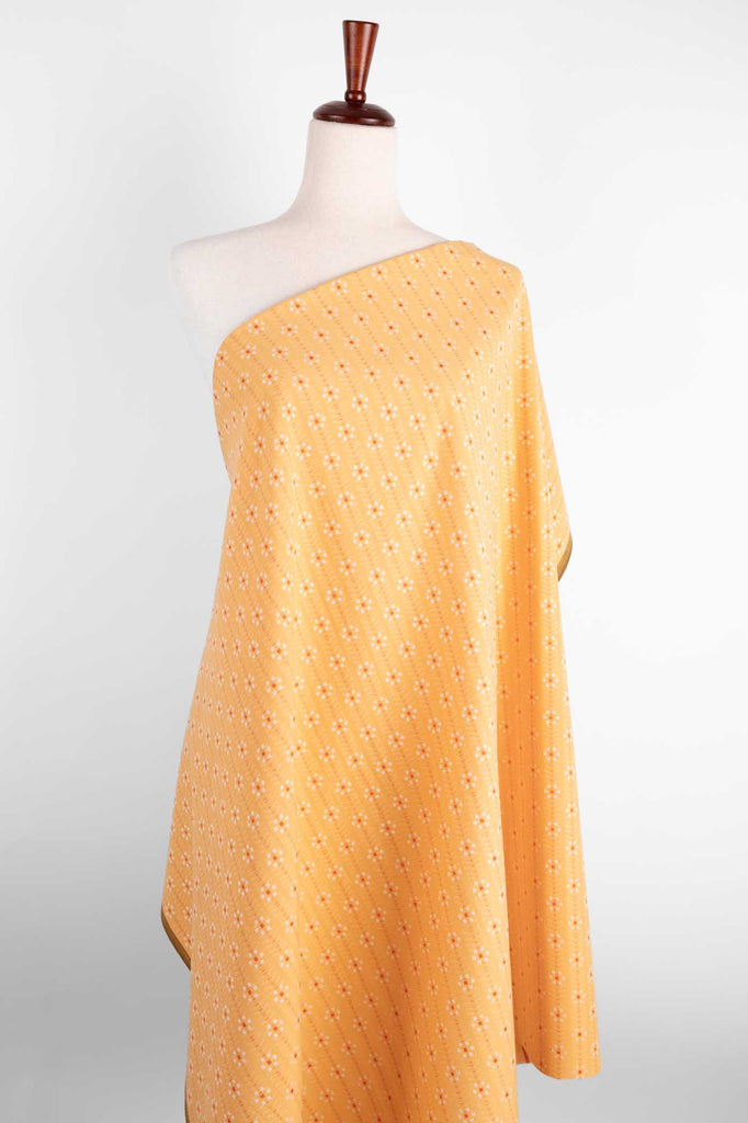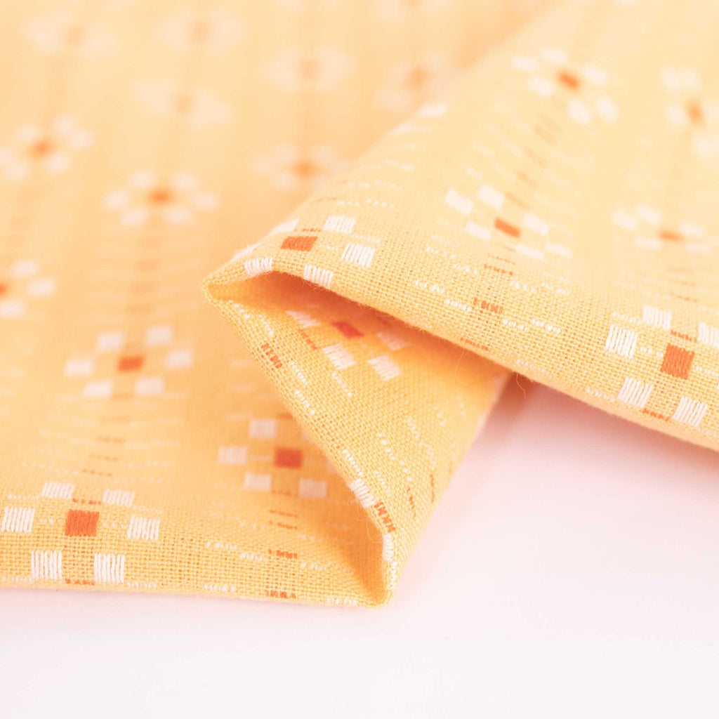 This yarn-dyed woven cotton fabric from Fableism features a geometric floral pattern woven into a sunny golden yellow base, perfect for adding a touch of whimsy to your handmade wardrobe. It has moderate drape and a light but structured feel, making it a great choice for blouses, dresses, or lightweight jackets. Easy to sew, versatile, and stylish—a little nature-inspired beauty for your next project.