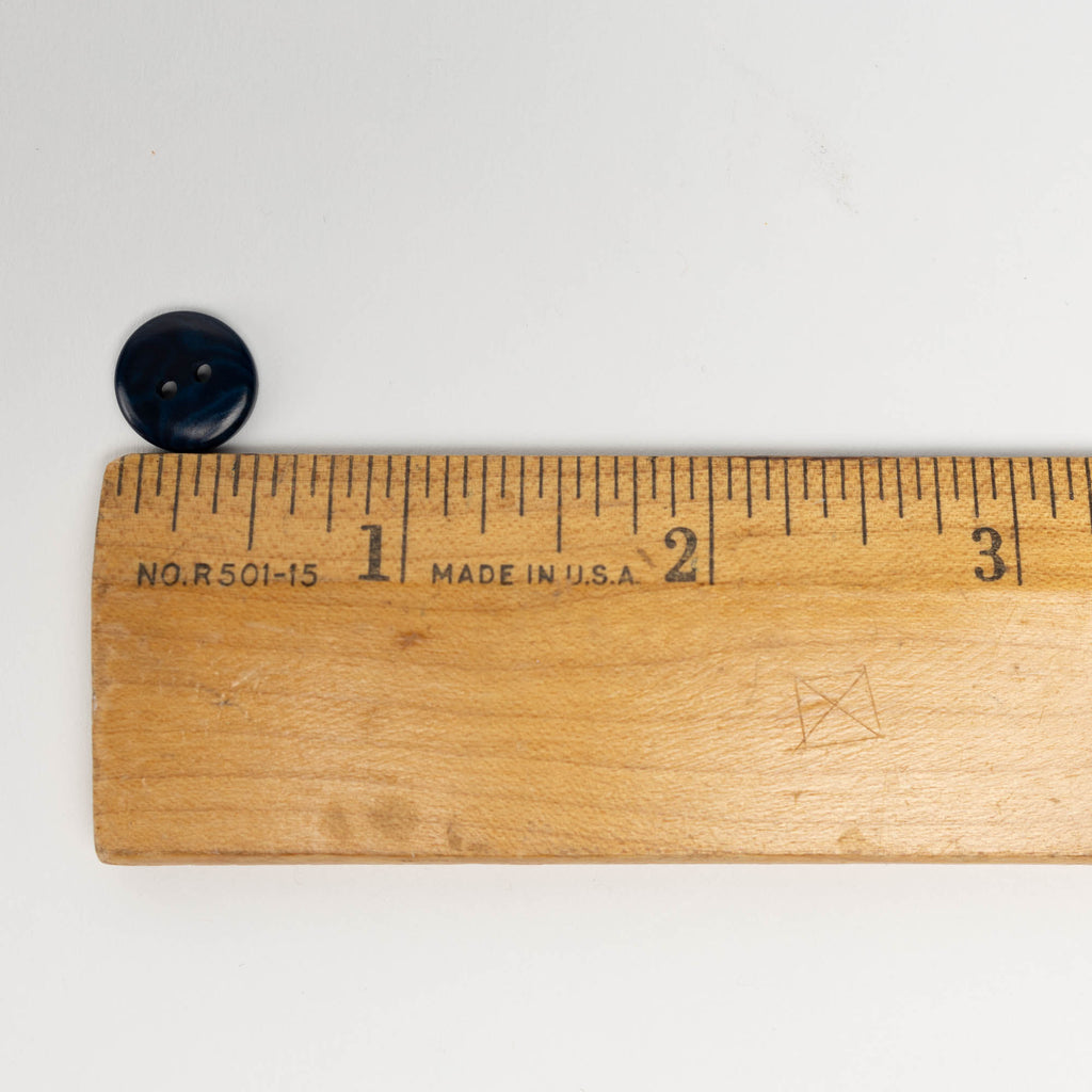 Durable, sustainable 11mm (7/16 inch) polished buttons in dark cobalt blue. Corozo buttons are carved from the fallen nuts of the Tagua tree, a native of South America. They are tinted using natural dyes, which show off their beautiful natural grain and give them a natural look. They are resistant to scratches, impact, water, and heat, and are machine washable - a perfect eco-friendly choice for garments and accessories.