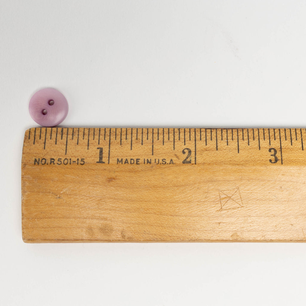 Durable, sustainable 11mm (7/16 inch) polished buttons in light lavender. Corozo buttons are carved from the fallen nuts of the Tagua tree, a native of South America. They are tinted using natural dyes, which show off their beautiful natural grain and give them a natural look. They are resistant to scratches, impact, water, and heat, and are machine washable - a perfect eco-friendly choice for garments and accessories.