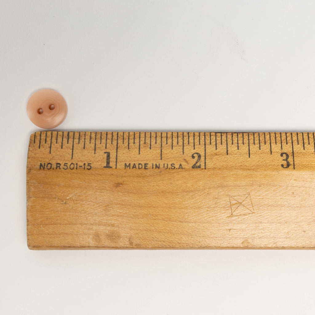 Durable, sustainable 11mm (7/16 inch) polished buttons in light peach. Corozo buttons are carved from the fallen nuts of the Tagua tree, a native of South America. They are tinted using natural dyes, which show off their beautiful natural grain and give them a natural look. They are resistant to scratches, impact, water, and heat, and are machine washable - a perfect eco-friendly choice for garments and accessories.