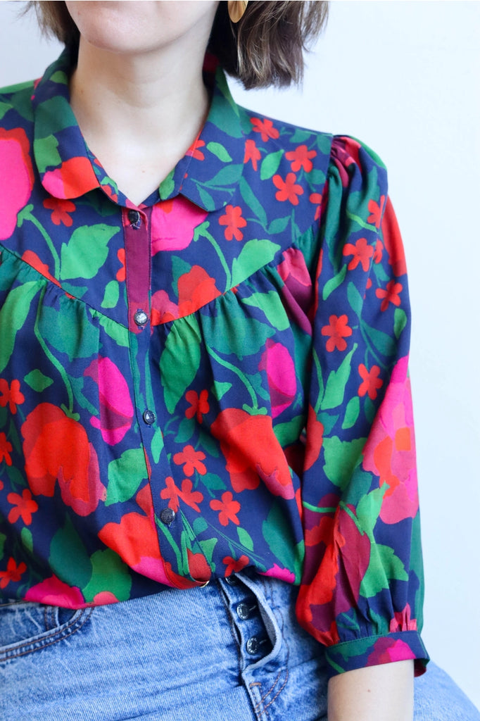 Rose Garden by Lise Tailor features red and pink roses painted over a dark green and navy base. The combination of bright flowers against a dark background made this print so versatile, from easy blouses and skirts to glamorous Christmas dresses. Lightweight, soft, and swishy, and made from eco-friendly Ecovero viscose.