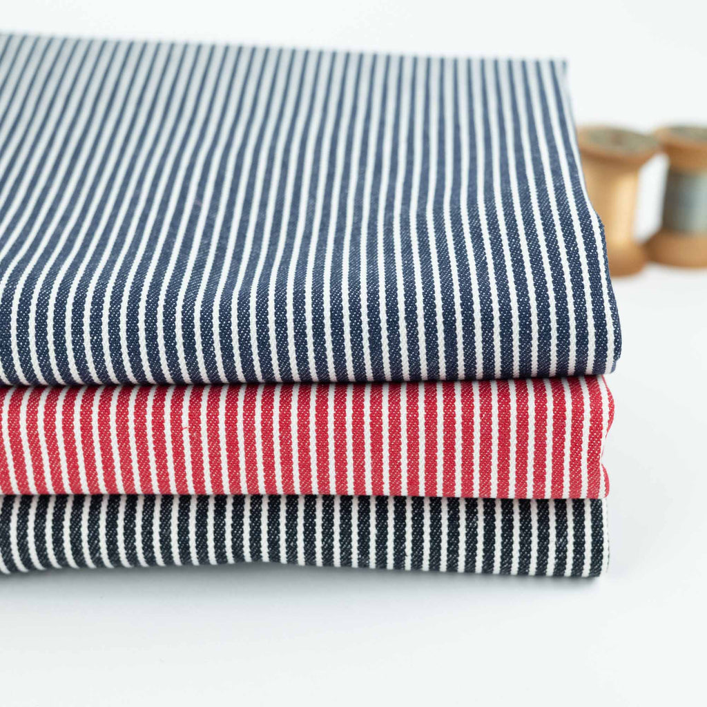 A beautiful denim fabric from Japan by Sevenberry. This yarn-dyed, 100% cotton fabric has the typical undyed weft threads of denim with black threads in a twill weave, giving it depth and character. It is soft and on the lighter end for denim, making it great for all-season apparel and accessories. Coordinates perfectly with Railroad Stripes Denim in Black.