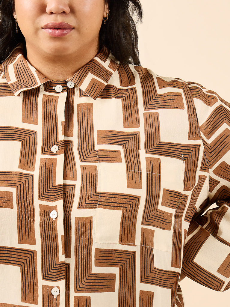 - The Fran Top features a shirt collar, cuffed sleeve, back yoke, inverted back pleat, and button loop at the neck.