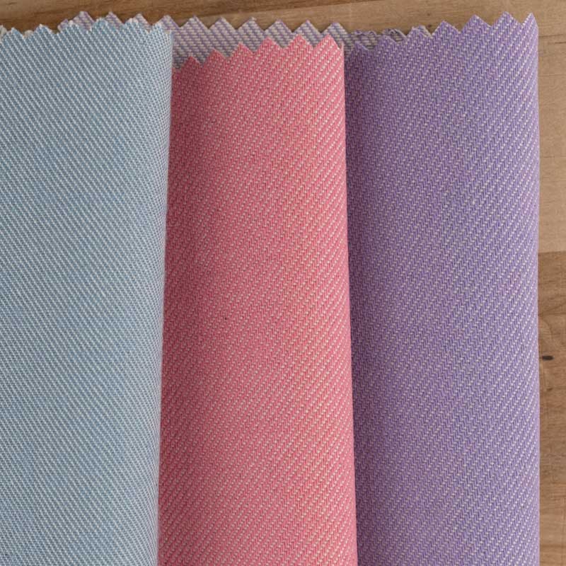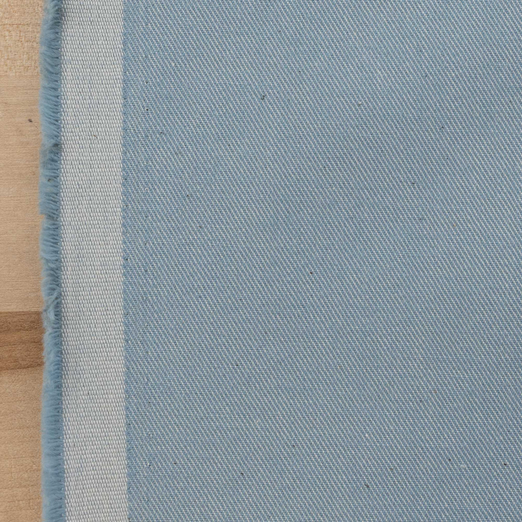 A special Italian deadstock denim from high-fashion brand Bluemarine. Excellent quality raw, yarn-dyed denim in a lightly speckled sky blue. This midweight fabric has a somewhat structured hand and uniform, denim weave of slightly finer threads. Ideal for modern jeans, slacks, jean jackets and skirts, bags, and accessories.