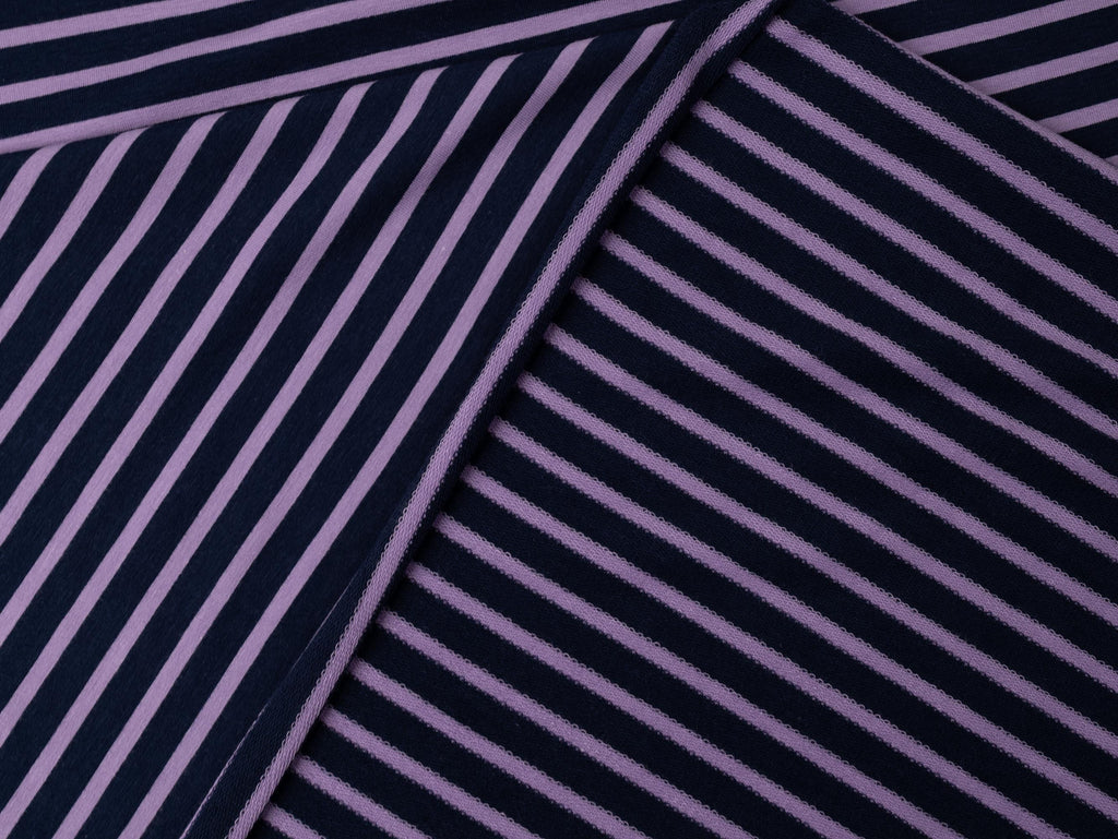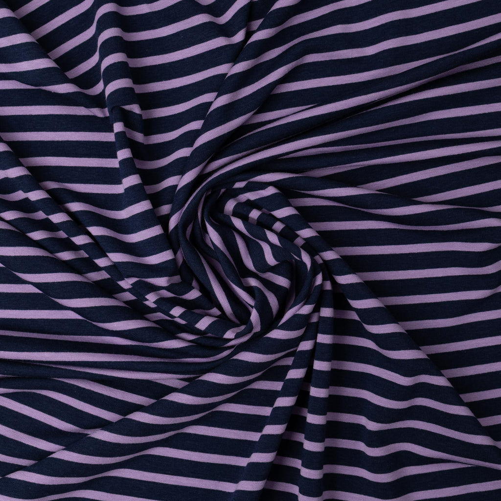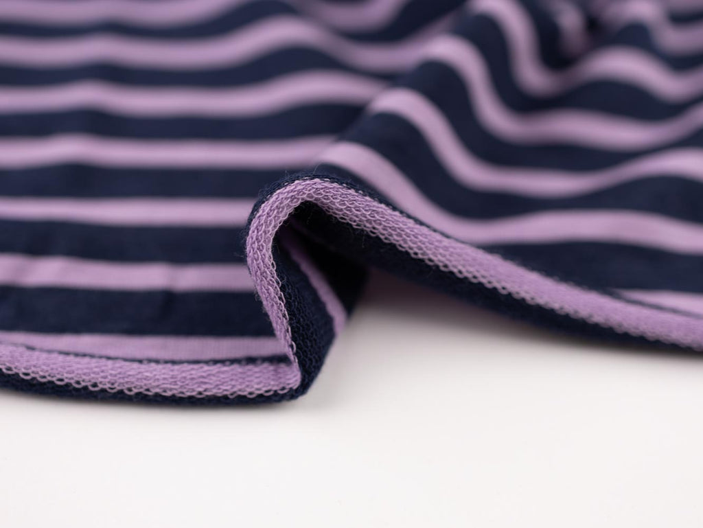 Bamboo Cotton French Terry in Breton Stripes, Lilac & Navy