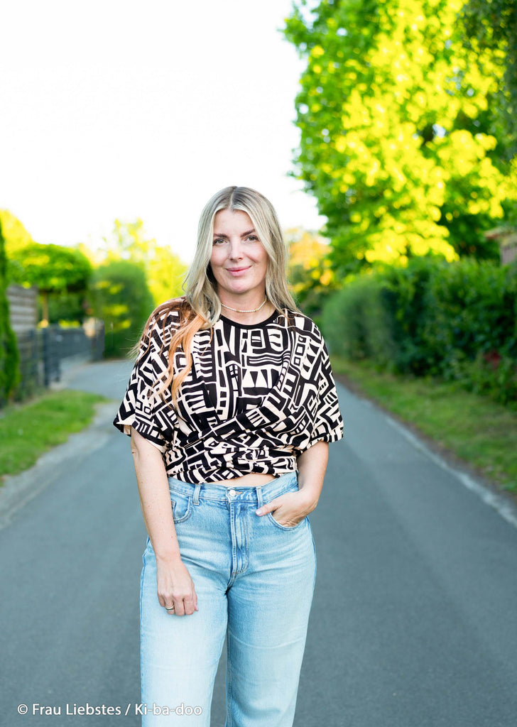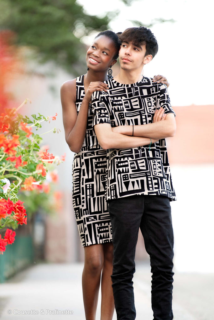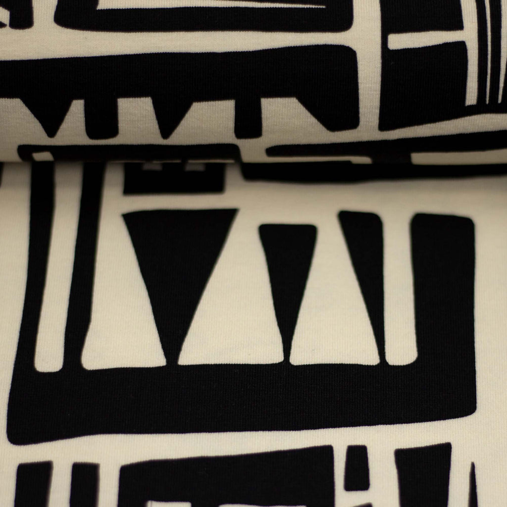 Funky is a bold, limited-edition cotton stretch jersey fabric from playful Austrian designer Bienvenido Colorido. Funky features bold abstract shapes in black on a warm cream background. Swafing produces some of the world's highest quality jersey knits, and this is no exception.  Great for soft clothes of all kinds - tops, dresses, skirts, and more.