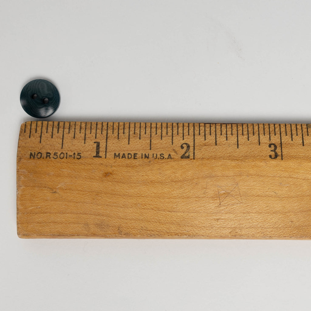 Durable, sustainable 11mm (7/16 inch) polished buttons in blue green. Corozo buttons are carved from the fallen nuts of the Tagua tree, a native of South America. They are tinted using natural dyes, which show off their beautiful natural grain and give them a natural look. They are resistant to scratches, impact, water, and heat, and are machine washable - a perfect eco-friendly choice for garments and accessories.