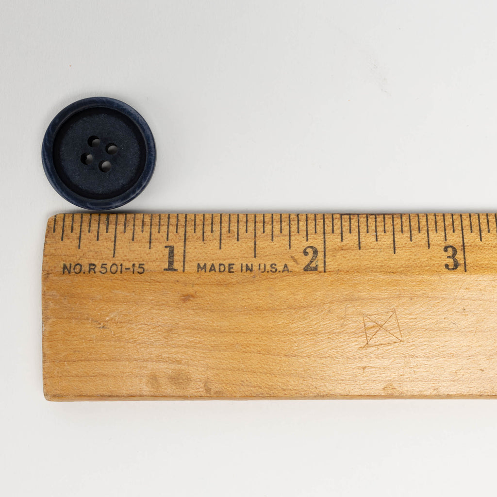 Durable, sustainable 20mm (3/4") buttons in a matte navy blue. Corozo buttons are carved from the fallen nuts of the Tagua tree, a native of South America. They are tinted using natural dyes, which show off their beautiful natural grain and give them a natural look. They are resistant to scratches, impact, water, and heat, and are machine washable - a perfect eco-friendly choice for garments and accessories.