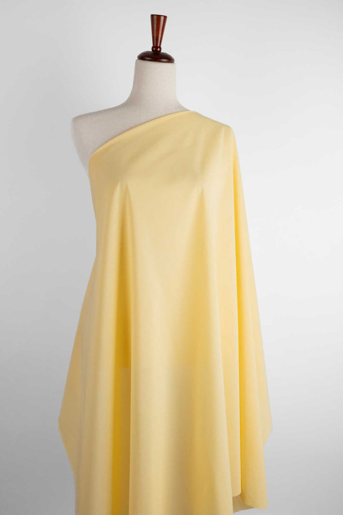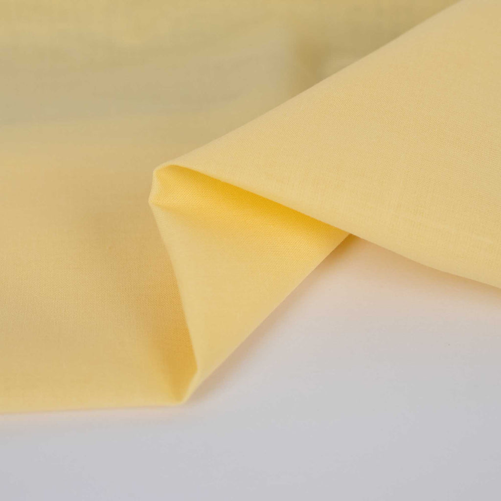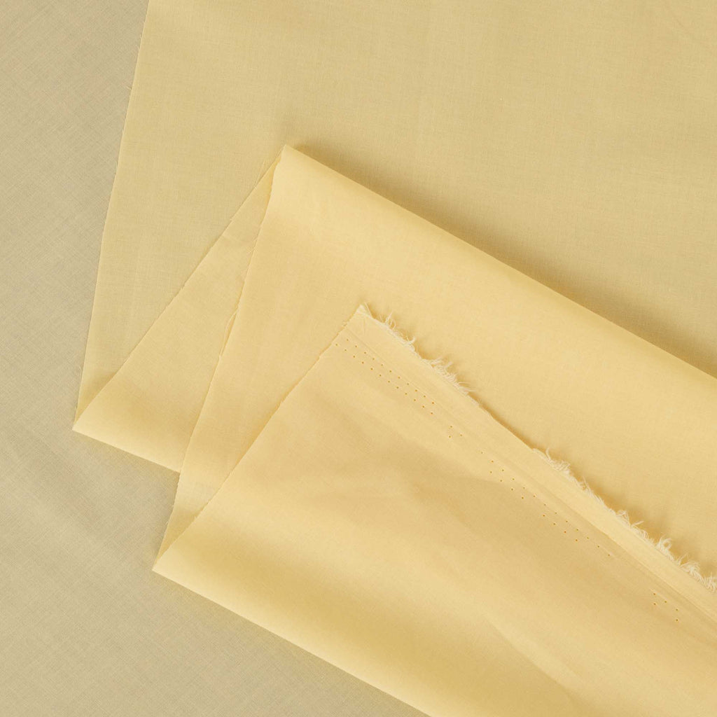 An exceptionally smooth, lightweight, opaque, and finely woven cotton lawn fabric by Lady McElroy. Oeko-tex Certified, nontoxic, and made in the UK. A versatile fabric that is great for lightweight, blousy summer garments or as a lining. The color Butter is a soft, light yellow. This shade is translucent.