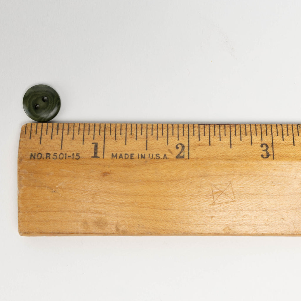 Durable, sustainable 11mm (7/16 inch) polished buttons in pine green. Corozo buttons are carved from the fallen nuts of the Tagua tree, a native of South America. They are tinted using natural dyes, which show off their beautiful natural grain and give them a natural look. They are resistant to scratches, impact, water, and heat, and are machine washable - a perfect eco-friendly choice for garments and accessories.