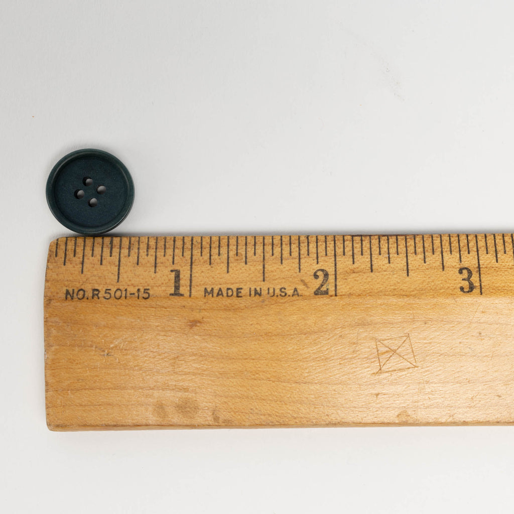 Durable, sustainable 15mm (5/8 inch) buttons in a matte forest green. Corozo buttons are carved from the fallen nuts of the Tagua tree, a native of South America. They are tinted using natural dyes, which show off their beautiful natural grain and give them a natural look. They are resistant to scratches, impact, water, and heat, and are machine washable - a perfect eco-friendly choice for garments and accessories.