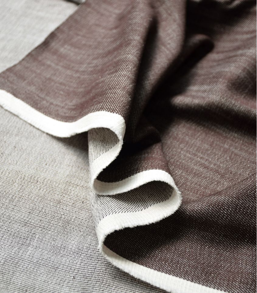 Beautiful, nuanced Italian denim from French design house Cousette. Look closely at these colors - a light cream weft between the rich espresso brown warp threads gives this a warm, heathered look. A moderately heavy-weight, non-stretch denim, with a soft hand, this fabric would make great pants, jackets, skirts, and more.