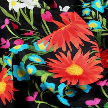 This vibrant floral design is printed onto the most wonderful quality ECOVERO™ satin dressmaking fabric. Lara Floral Viscose ECOVERO™ Satin in black is a medium-weight and opaque with fluid drape and a gorgeous high shine. It is ideal for making dresses, blouses, and skirts, and shines particularly well in bias cut garments.