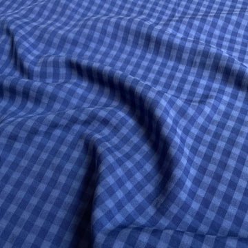 This eco-friendly twill from meetMilk® of Denmark is a dark, jewel-toned indigo with a subtle sheen and a fluid drape. Each check measures about a quarter of an inch. Made with super-sustainable TENCEL™ lyocell and Oeko-Tex certified non-toxic. It would be perfect for a pair of pants, a duster, a dress, a skirt, and more.