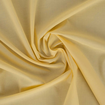 An exceptionally smooth, lightweight, opaque, and finely woven cotton lawn fabric by Lady McElroy. Oeko-tex Certified, nontoxic, and made in the UK. A versatile fabric that is great for lightweight, blousy summer garments or as a lining. The color Butter is a soft, light yellow. This shade is translucent.