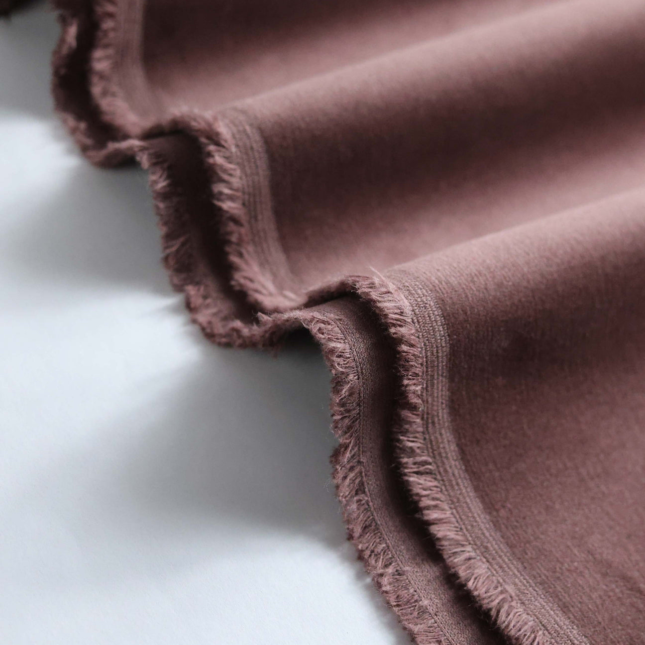 A velvety, midweight pinwale corduroy fabric made with 98% sustainable cotton and 2% spandex for comfortable stretch. Also known as babycord or needlecord, this corduroy has a high 21 wales per inch. The fabric has a velvety feel and holds its shape beautifully, making it perfect for pants, a-line skirts, jackets, blazers, and structured dresses. With 30% straight grain stretch, it allows for comfortable movement without losing its shape. Plum is a darker lilac purple.