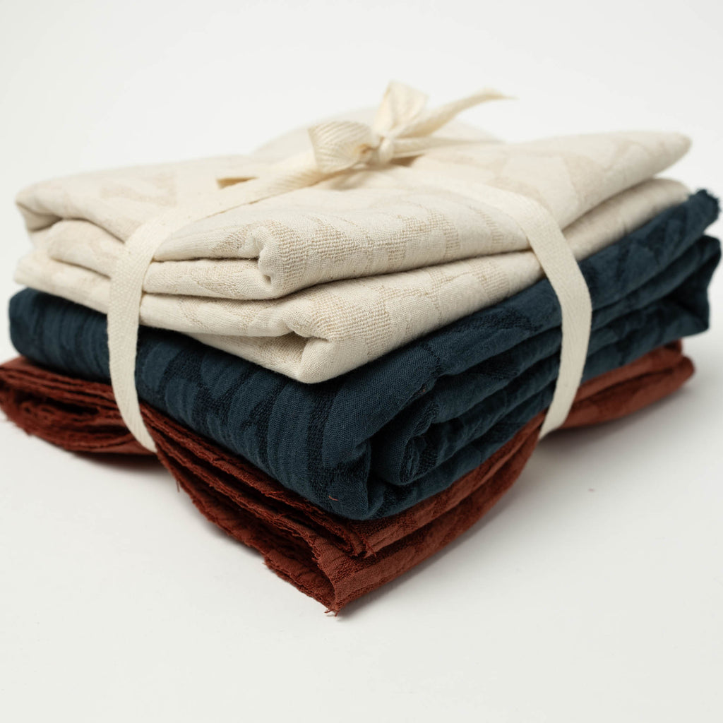 A one-pound bundle of our beloved Weston Linen Blend Jacquard, including discontinued shades! Each bundle equates to approximately 2.2 yards of 50" wide fabric, and contains 3-4 different solid colors. These are not tiny scraps, but generally measure 8"-18" long. Perfect for scrapwork, bags, accessories, color blocking, and more. Great as a gift or for gift making!